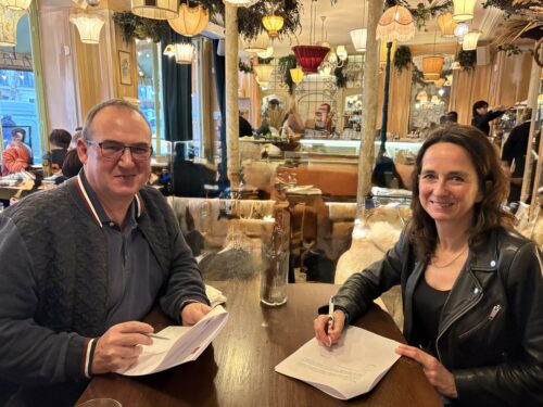Rozenn MERRIEN, présidente de l’ANDEV et Patrice Ulles, président de l’AFINEF ont signé ce partenariat qui vise à renforcer les synergies entre les collectivités territoriales et les acteurs du numérique éducatif autour de trois objectifs clés :